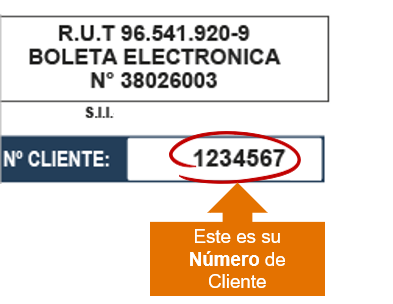 - Encontrarás tu número de cliente destacado en la esquina superior de tu boleta o factura.