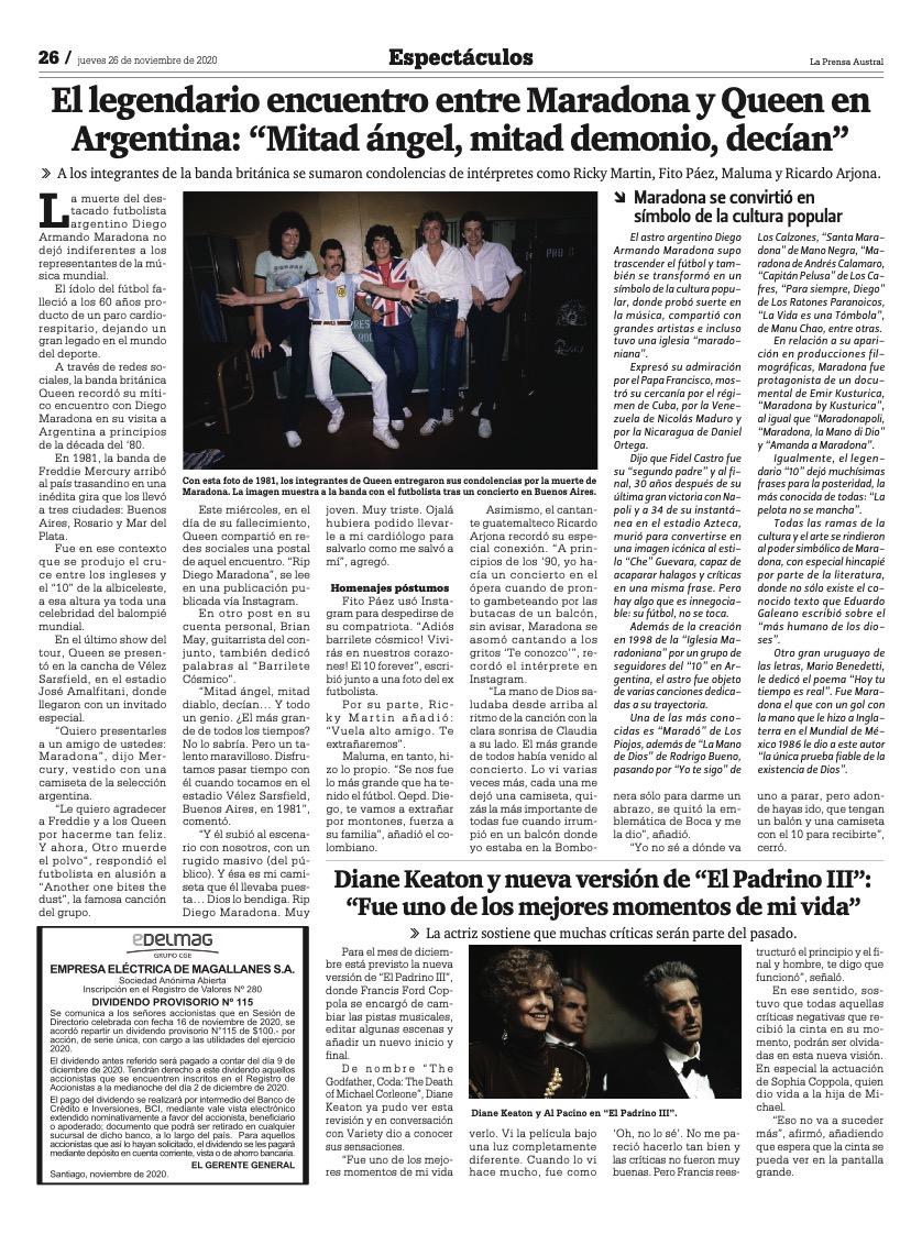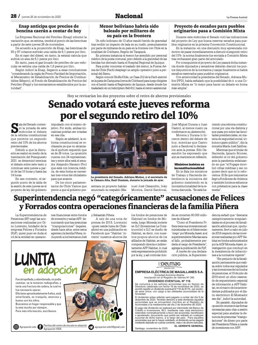 Pago Dividendo Provisorio N° 115 – EDELMAG, La Prensa Austral nov-2020