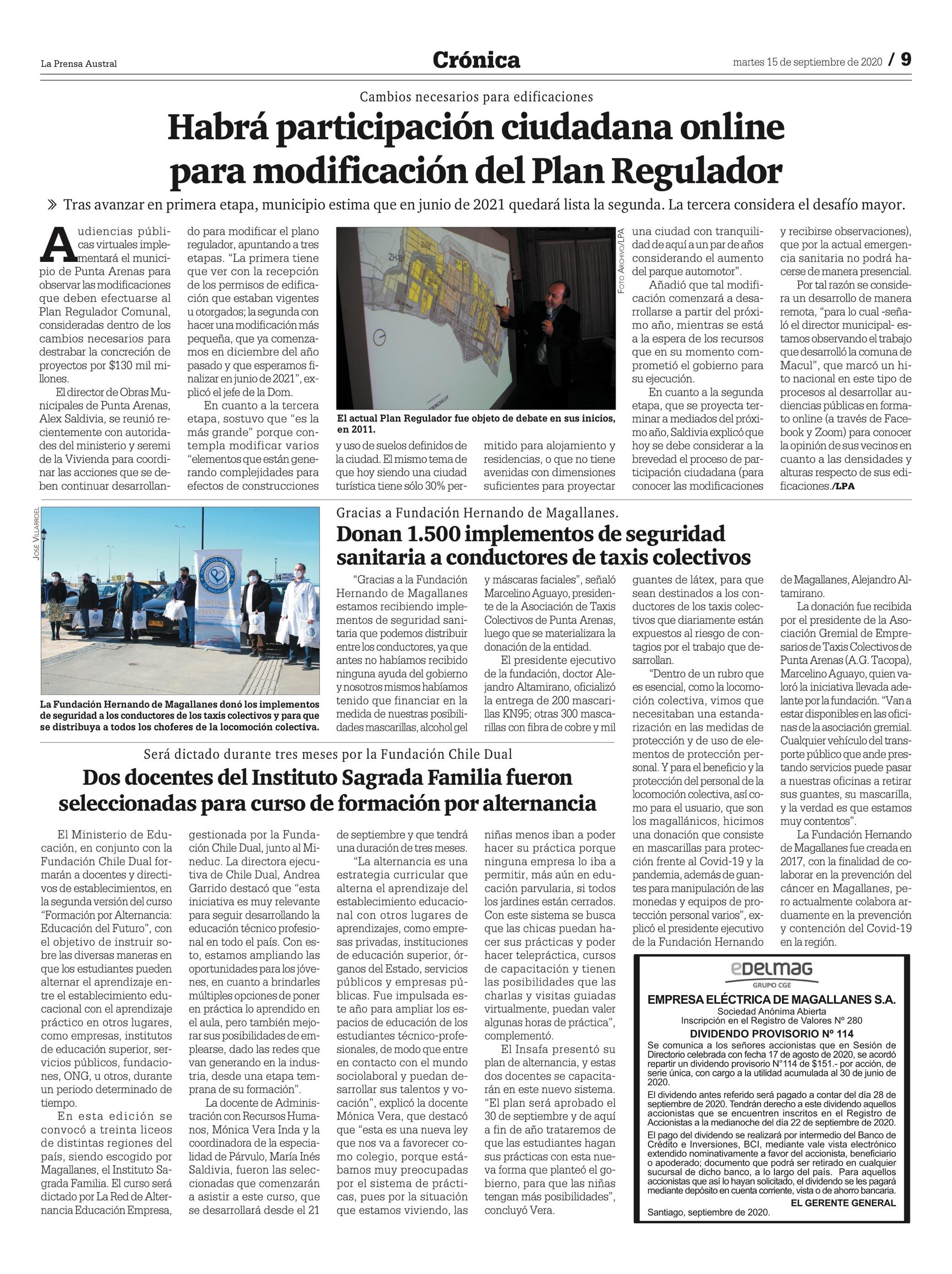 Pago Dividendo Provisorio N° 114 – EDELMAG, diario La Prensa Austral sep-2020