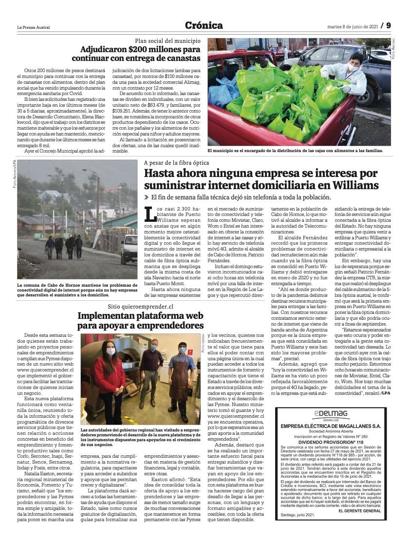 Pago Dividendo Provisorio N° 118 – EDELMAG, La Prensa Austral jun-2021