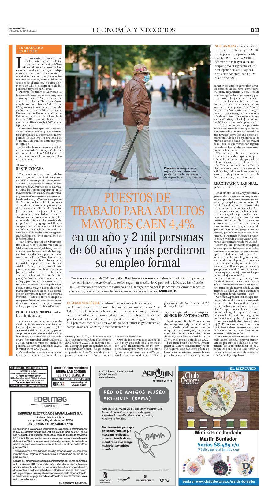 Pago Dividendo Provisorio N° 118 – EDELMAG, El Mercurio 19 de junio 2021