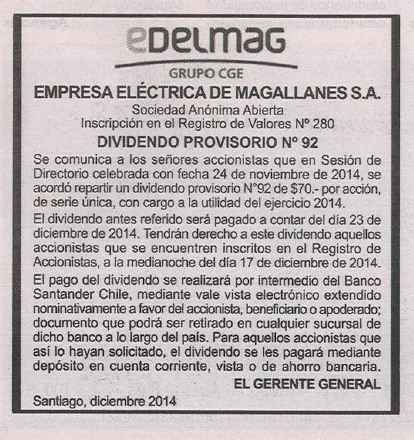 Pago Dividendo Provisorio EDELMAG La Prensa Austral dic-2014