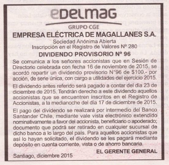 Pago Dividendo Provisorio EDELMAG La Prensa Austral dic-2015