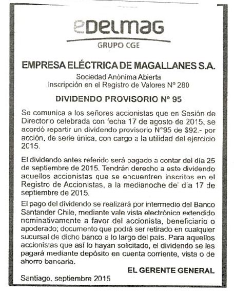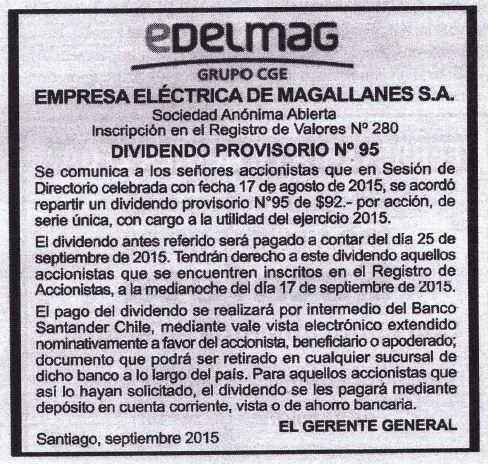 Pago Dividendo Provisorio EDELMAG La Prensa Austral sep-2015